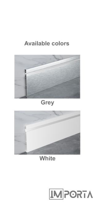 Image gallery showcasing the FLL-A-3-A12 skirting profile’s tall presence, clean beveled edge, and smooth finishes in modern interiors.