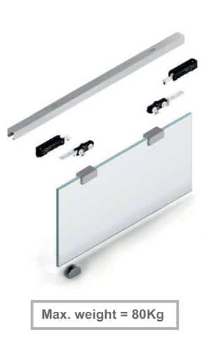 تجهيزات أبواب منزلقة رولان 80 NT – مجموعة كاملة للأبواب الزجاجية بدون إطار (حتى 80 كجم)<br>