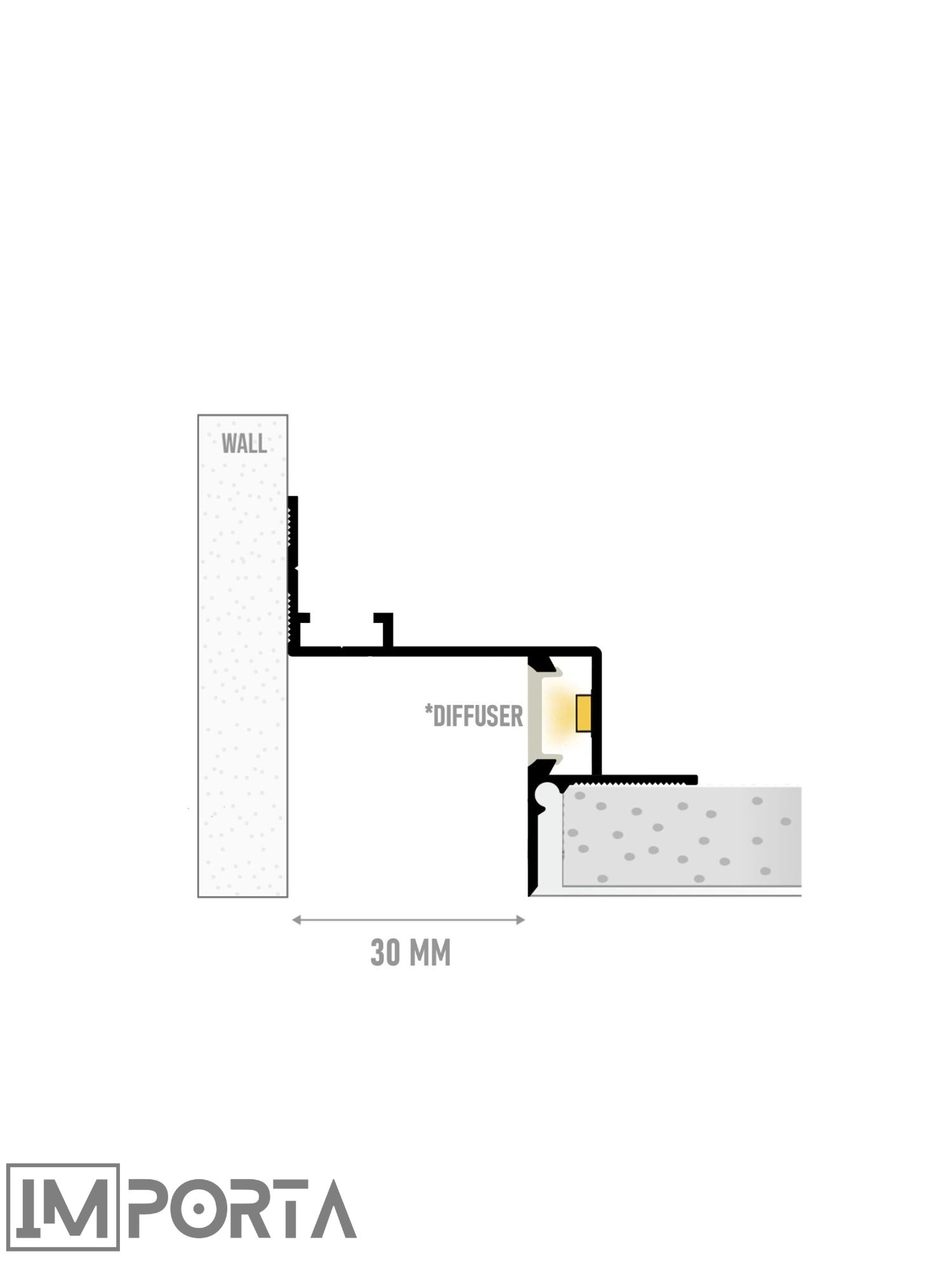 Hidden skirting Importa is built in walls, which is invisible and located inside the walls and with final inserts can be in one level with walls.